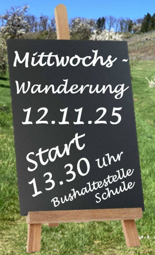 Mittwochswanderung Mi., 12.11.2025, Uhrzeit: 13:30 - 18:00 iCalendar Mit dem Laden der Karte akzeptieren Sie die Datenschutzerklärung von Google.Mehr erfahren Karte laden Google Maps immer entsperren zur Übersicht