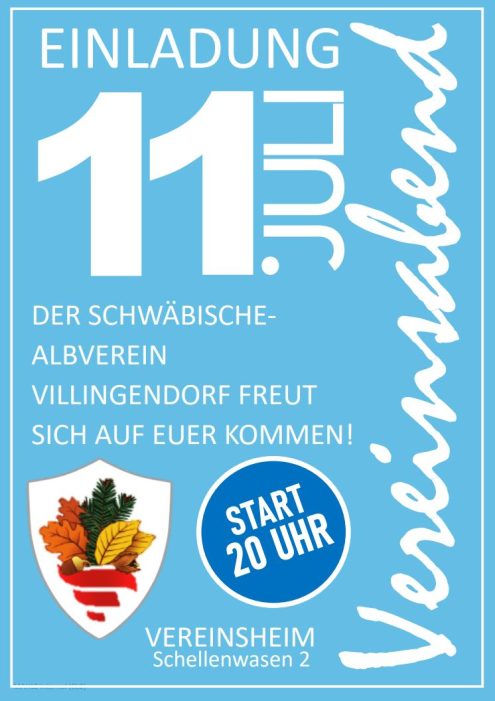 Vereinsabend Fr., 11.07.2025, Villingendorf Uhrzeit: 20:00 - 23:45 Ort: Vereinsheim Schellenwasen 2 78667 Villingendorf iCalendar Mit dem Laden der Karte akzeptieren Sie die Datenschutzerklärung von Google.Mehr erfahren Karte laden Google Maps immer entsperren zur Übersicht